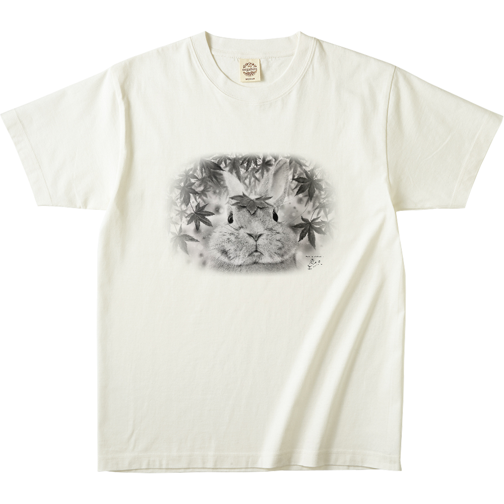 細密鉛筆・色鉛筆画家Mioによる作品『うさぎと紅葉』の細密鉛筆画のオーガニックコットンTシャツ。